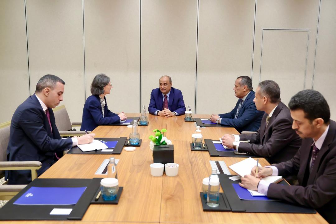 وبحث اللقاء أوجه التعاون بين البلدين وآفاق الشراكة المستقبلية، وسبل تنسيق الجهود مع الشركاء الدوليين لدعم خطط الحكومة في مجالات التنمية والتعافي الاقتصادي وبناء المؤسسات وتنفيذ الإصلاحات الشاملة، إلى جانب مناقشة مستجدات الأوضاع على الساحتين الوطنية والإقليمية.