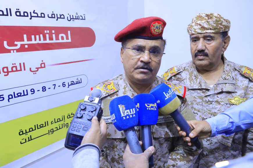 وجرى التدشين بحضور المفتش العام في القوات المسلحة اللواء الركن عادل القميري، ورئيس لجان صرف المكرمة العميد عبداللطيف العواضي، ونائب مدير دائرة الرعاية الاجتماعية العميد محمد الصلاحي، إلى جانب عدد من القيادات العسكرية والأمنية.