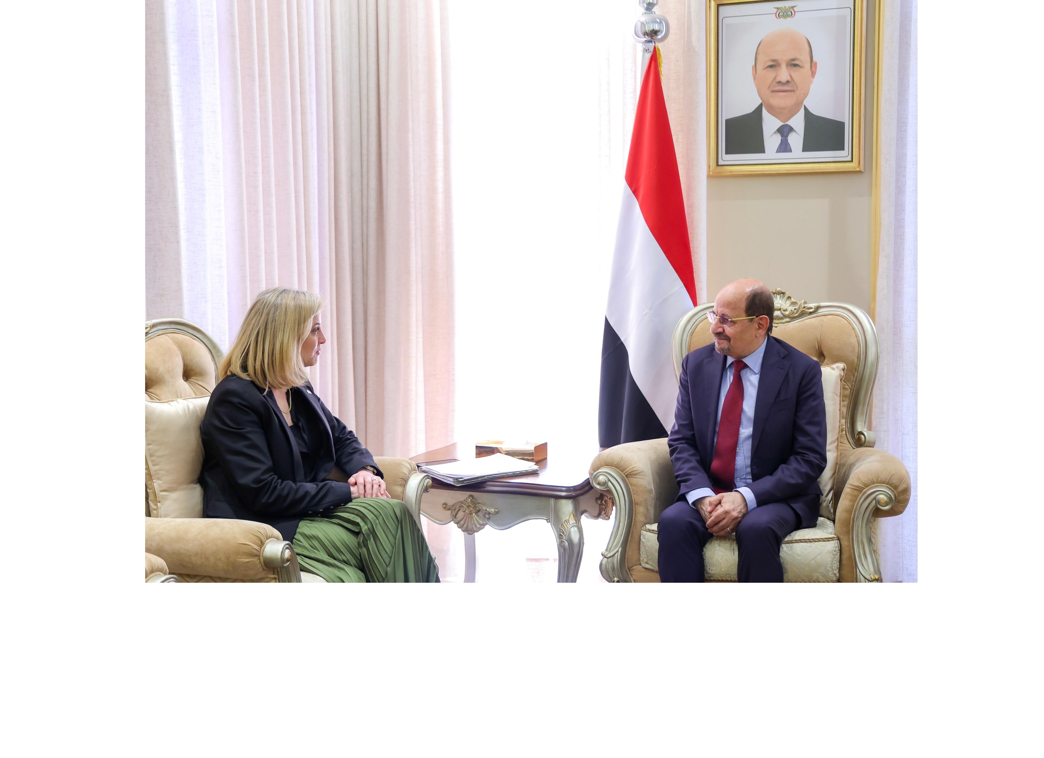ورحّب رئيس الوزراء بالسفير الأمريكي، مؤكداً حرص الحكومة على تطوير الشراكة مع الولايات المتحدة، ومثمناً دعمها المتواصل لليمن، لا سيما في الجوانب الاقتصادية والإنسانية، ودعم مؤسسات الدولة، وجهود استعادة الاستقرار. كما أشاد بالمواقف والإجراءات الأمريكية المساندة للحكومة في مواجهة تهديدات مليشيا الحوثي والتنظيمات الإرهابية.